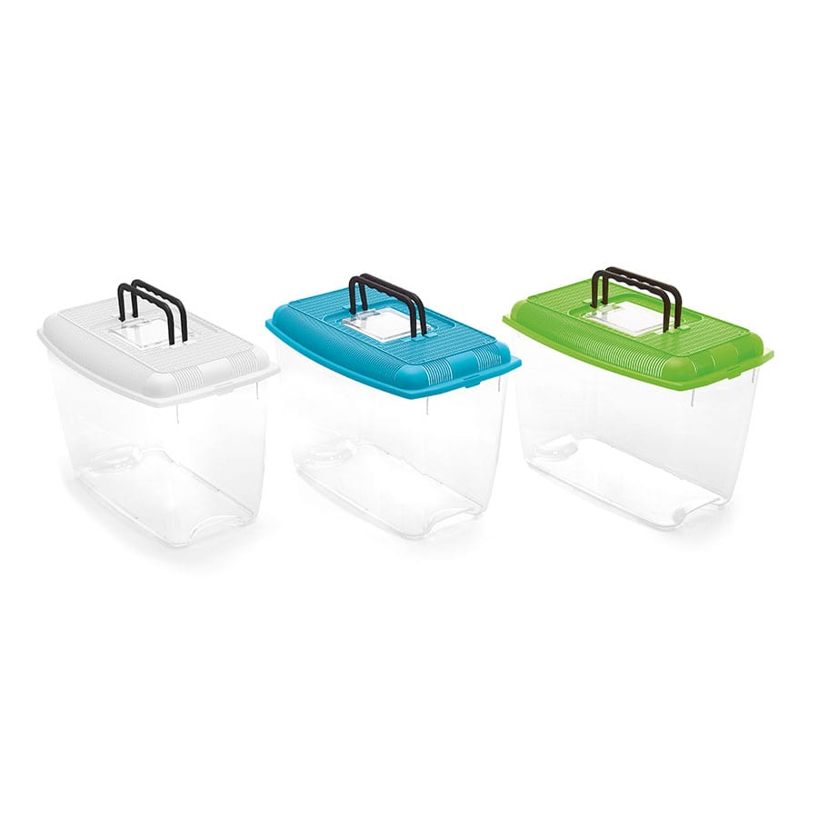 Ariel is a plastic tank perfect for housing goldfish or temporarily holding fish while your aquarium undergoes cleaning or maintenance. The transparent plastic design features a removable lid for easy cleaning and a retractable handle for convenient transport. The lid also has a central opening for feeding and side slots for optimal air circulation. Ariel comes in various colours and three sizes: Small (2 litres), Medium (4 litres), and Large (10 litres).