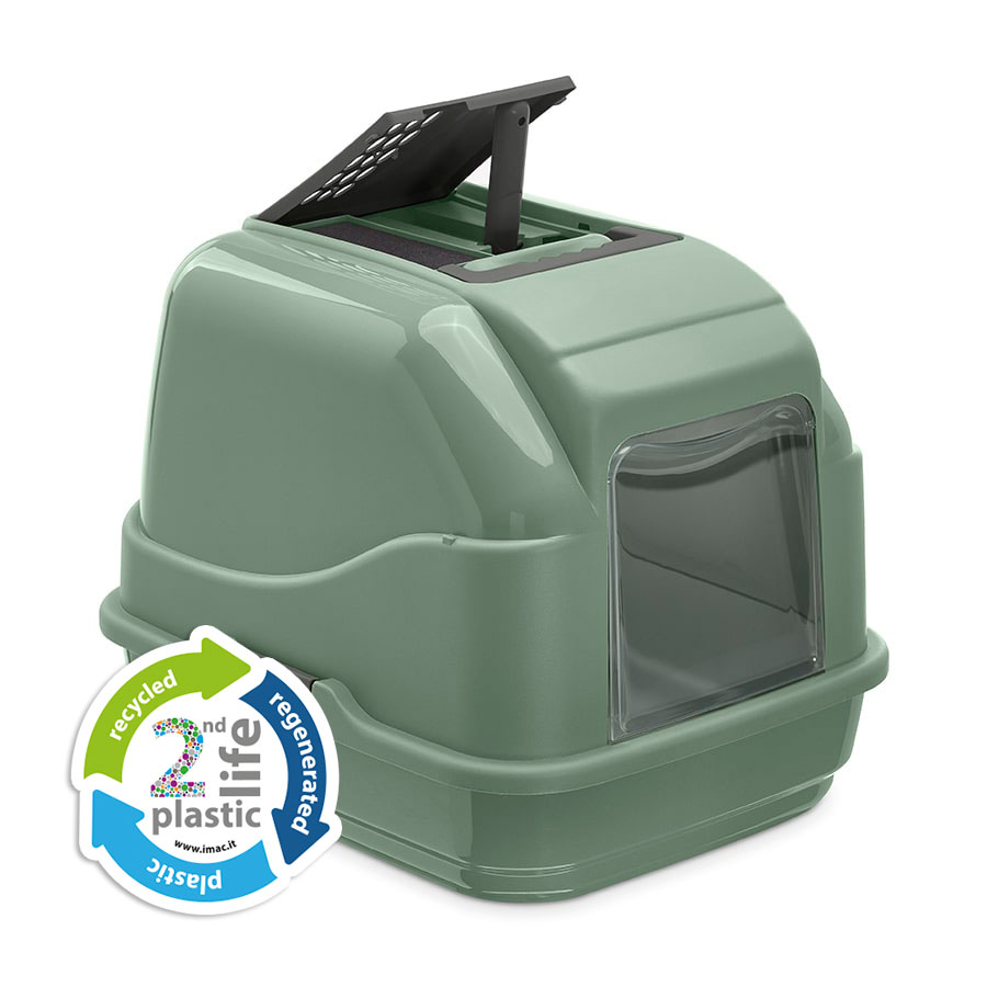 Easy Cat is an essential, practical, and stylish litter box for your cat’s daily hygiene. Made from durable polypropylene, it comes in new colours and an eco-friendly Second Life Plastic version. Cleaning is simple with side clips for removing the lid and adding Clean Up liners. The ergonomic handle makes it easy to place the litter box wherever needed. The swinging door and activated carbon filter trap odours, ensuring proper ventilation and effective odour control. Additionally, it features a hidden slot for the scoop, ready for use.