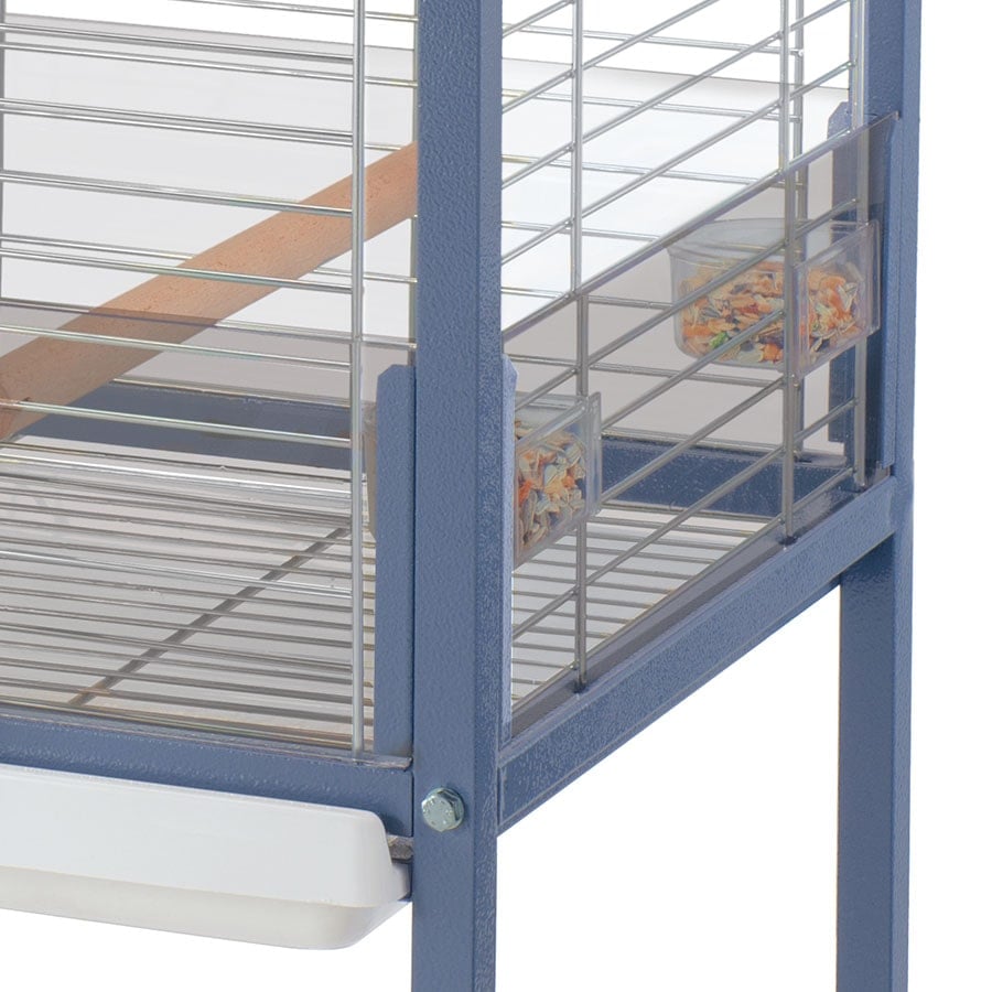 Amanda è una gabbia per pappagalli con una struttura resistente e dotata di tutti i comfort per accogliere il tuo amico pennuto. La struttura in metallo verniciato con base rettangolare e il tetto ad arco, fa di questa gabbia una dimora elegante. Sulla parte frontale della rete in metallo zincato è posizionata un’ampia apertura per allestire l’interno della gabbia. Il fondo dispone di un cassetto estraibile, pensato per una pulizia periodica comoda e veloce e di una griglia anti-sporco progettata per la salute del tuo pappagallo. Una paratia laterale in plexiglass posta alla base del fondo eviterà di far uscire lo sporco, mantenendo lo spazio circostante pulito. L’uscita sul tetto consentirà ai vostri alati di svolazzare all’esterno e di tornare alla gabbia a loro piacimento e posarsi sul posatoio in legno posto tra le due aperture. Essendo Amanda una gabbia di grandi dimensioni, risulteranno indispensabili le ruote piroettanti che ti permetteranno di spostare la gabbia da un luogo all’altro con estrema facilità.