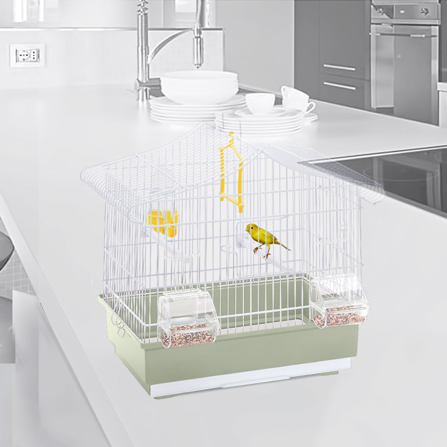 Ava la gabbia per canarini e piccoli esotici dalle dimensioni ridotte ma molto carina, grazie al suo tetto spiovente arrotondato. L’abbinamento cromatico della struttura in rete metallica verniciata al fondo in plastica, rendono questa gabbia piacevole alla vista. Per una pulizia approfondita basta sganciare il fondo grazie alle pratiche clips laterali. Invece per una pulizia quotidiana e veloce basta estrarre il cassettino frontale. Le due porticine, una frontale e una laterale, consentono di accedere comodamente alla gabbia per le normali operazioni di manutenzione. Completano la gabbia Ava gli accessori necessari per accogliere o ospitare nel miglior comfort i tuoi piccoli amici: due posatoi, un’altalena, un beverino Tweety 100 e due mangiatoie Mia, ideali per versare cibo senza estrarle dalla gabbia. Dotata di maniglia per facile trasporto o per agganciarla al Portagabbie 214 o 216, in modo da posizionarla nel luogo più adatto della tua casa.