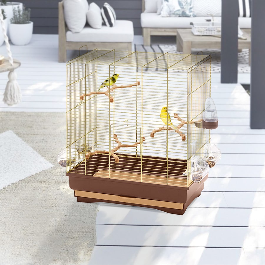 La gabbia Carlotta è una gabbia per canarini, cocorite e piccoli esotici a base rettangolare, essenziale ma spaziosa. La gabbia si pulisce in un attimo grazie al fondo in plastica con cassetto raccogli sporco estraibile. Carlotta è acquistabile completa dei seguenti accessori: quattro mangiatoie Mia in plastica trasparente, un beverino Tweety 100 e tre posatoi a forma di ramo che permettono di variare continuamente la presa delle zampette, rendendo l’utilizzo simile a quello che si trova in natura. Provate il comodissimo optional Portagabbie 202, per spostare la Carlotta senza difficoltà, grazie alle ruote piroettanti.