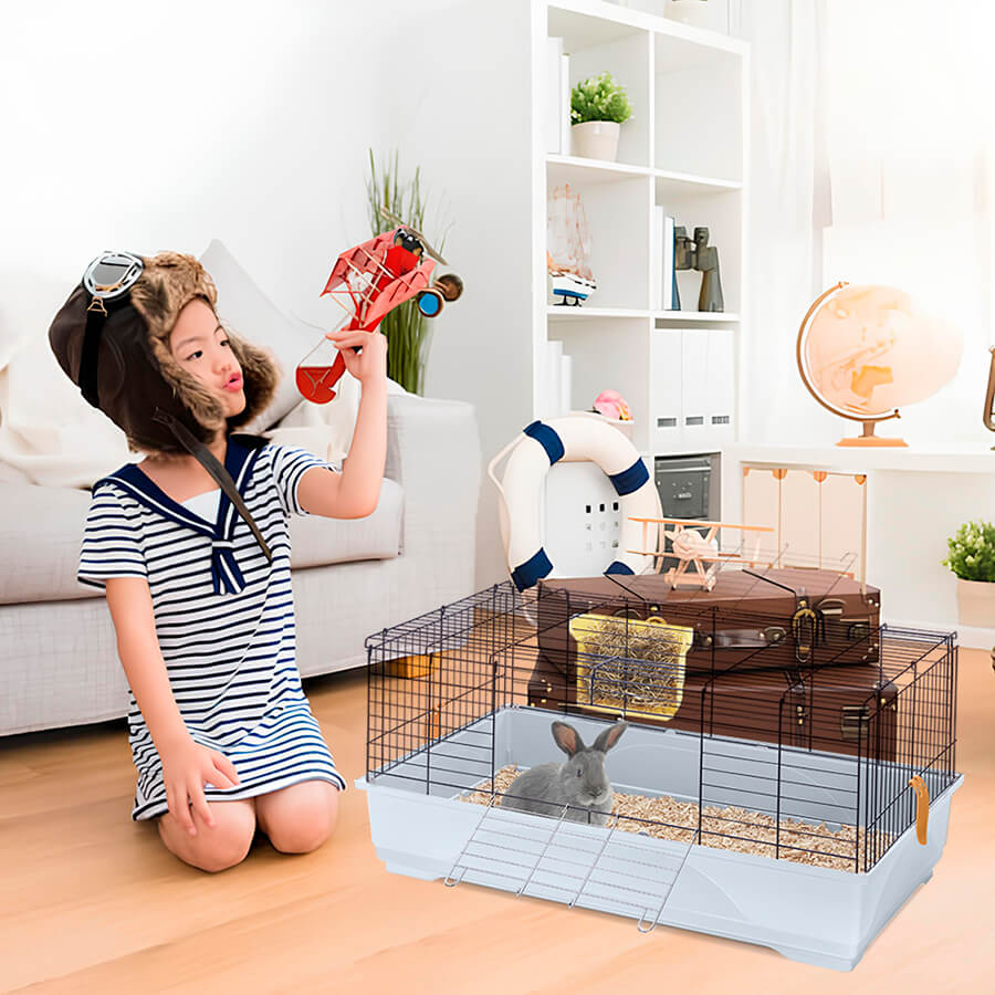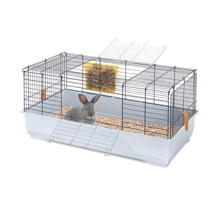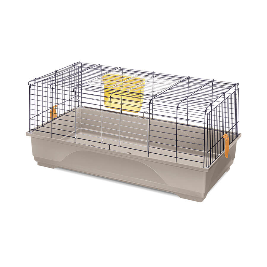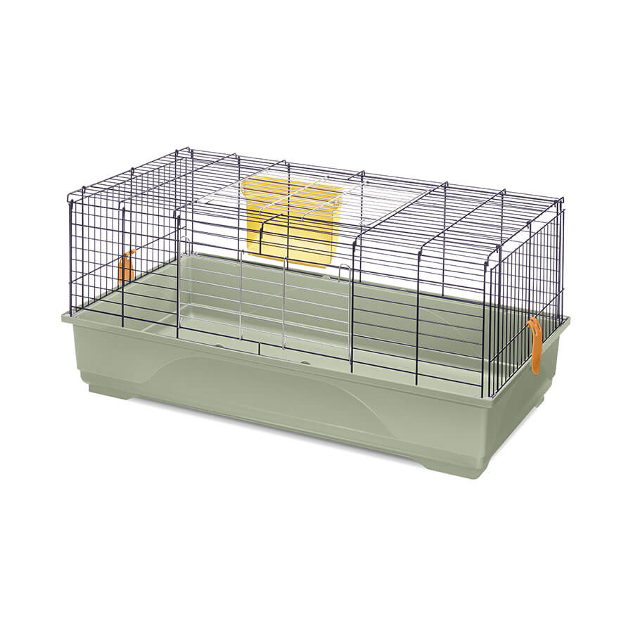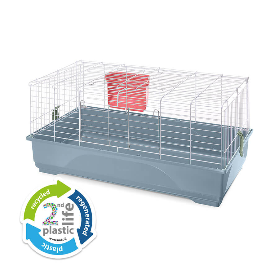 Per i tuoi conigli o cavie Easy 100 è una gabbia con ampio spazio e adatta ai loro fabbisogni e alle loro abitudini. Fondo in plastica capiente e struttura in rete metallica verniciata, uniti da pratici ganci laterali. Potrai inserire comodamente il cibo tramite le due ampie aperture. La mangiatoia esterna, agganciata alla rete, ti permetterà di fornire al tuo roditore il fieno necessario alla sua dieta quotidiana. Potrai arricchire la tua gabbia scegliendo tra i numerosi accessori disponibili per offrire il massimo comfort al tuo piccolo amico. Disponibile nei nuovi colori e nella versione Second Life Plastic. Prova il comodo optional Portagabbie 100 e scoprirai com’è facile spostare la gabbia grazie alle ruote piroettanti. Easy 100 è una gabbia facilmente assemblabile ed è realizzata con il sistema salva-spazio.