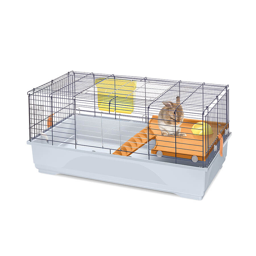 Della serie Ronny la 100 è la gabbia intermedia, di medie dimensioni per conigli e cavie. Il fondo in plastica particolarmente capiente per contenere la lettiera, è unito tramite due comode clip alla struttura in rete metallica verniciata. L’habitat è dotato di un ripiano interno in plastica agganciato alla rete, accessibile dal fondo tramite una comoda scaletta. Completano la dotazione interna gli accessori quali ciotola in plastica Fun Bowl, mangiatoia esterna per il fieno Feel e il beverino Bibber 400 con pratico aggancio alla rete. Le due ampie aperture, una superiore e una frontale, vi consentono di raggiungere facilmente il vostro animale all’interno della gabbia. Disponibile anche nella versione Second Life Plastic. Scopri la comodità del Portagabbie 100 in metallo verniciato, per spostare facilmente dove vuoi la gabbia, grazie alle ruote piroettanti. Ronny 100 è realizzata con il sistema salva-spazio ed è facilmente assemblabile.
