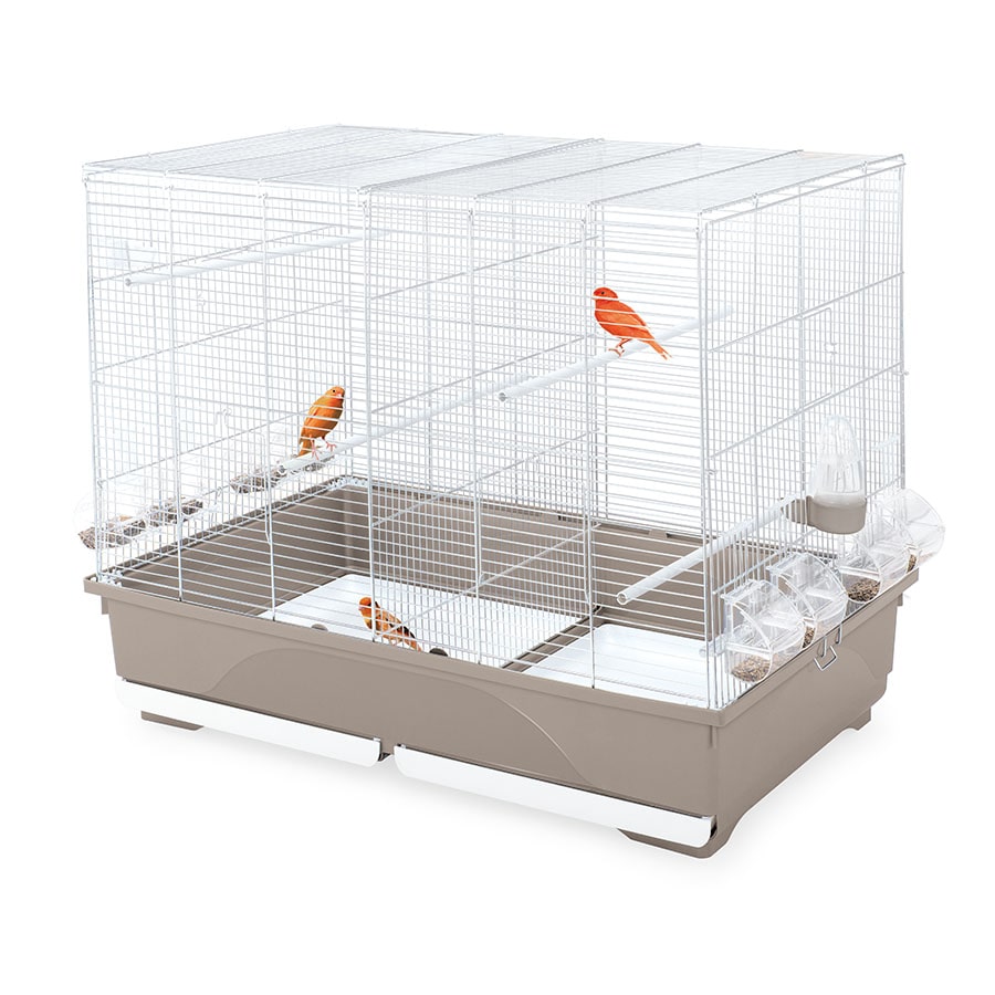 Tasha è una gabbia di dimensioni generose, con rete zincata e fondo in plastica, per canarini, esotici e piccoli pappagallini. Ideale per ospitare più coppie che possono essere separate per mezzo del separè che inserito dal tetto divide la gabbia in due. Tasha viene fornita di tutti gli accessori necessari, ben 8 mangiatoie Mia, due beverini Tweety. Dispone di un fondo con bordo alto anti sporco, con due cassetti estraibili per rendere più facile e pratica la pulizia. Proprio per le sue dimensioni, risulterà utilissimo il Portagabbie per spostare la gabbia senza nessuna difficoltà, grazie alle ruote piroettanti.